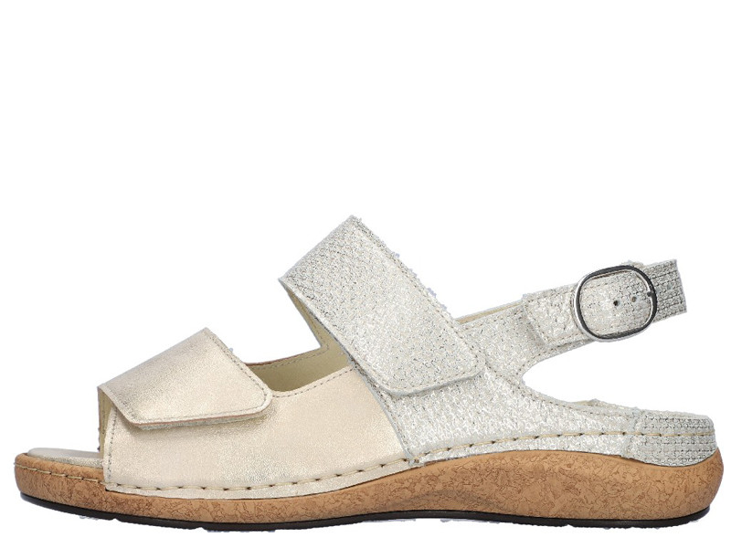 Kényelmes, divatos, három ponton tépőzárral rögzíthető női szandál, széles bőségben.