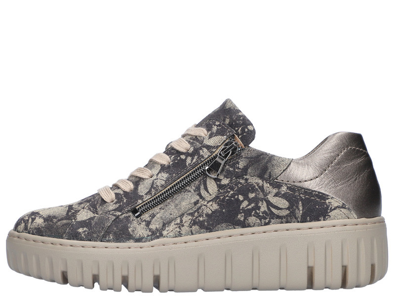 Kényelmes, divatos, fűzős női félcipő, széles bőségben, külső oldalán cipzárral.